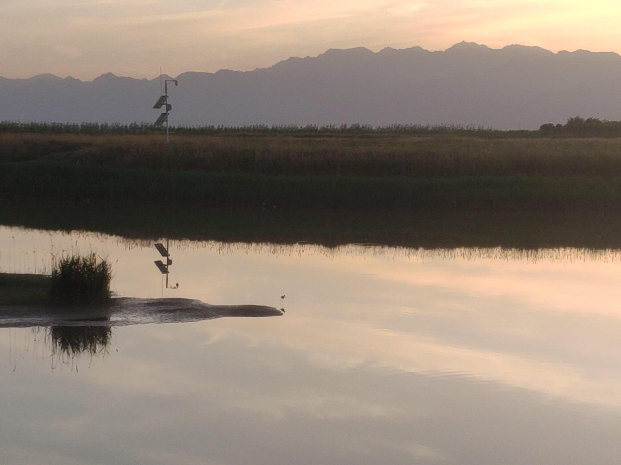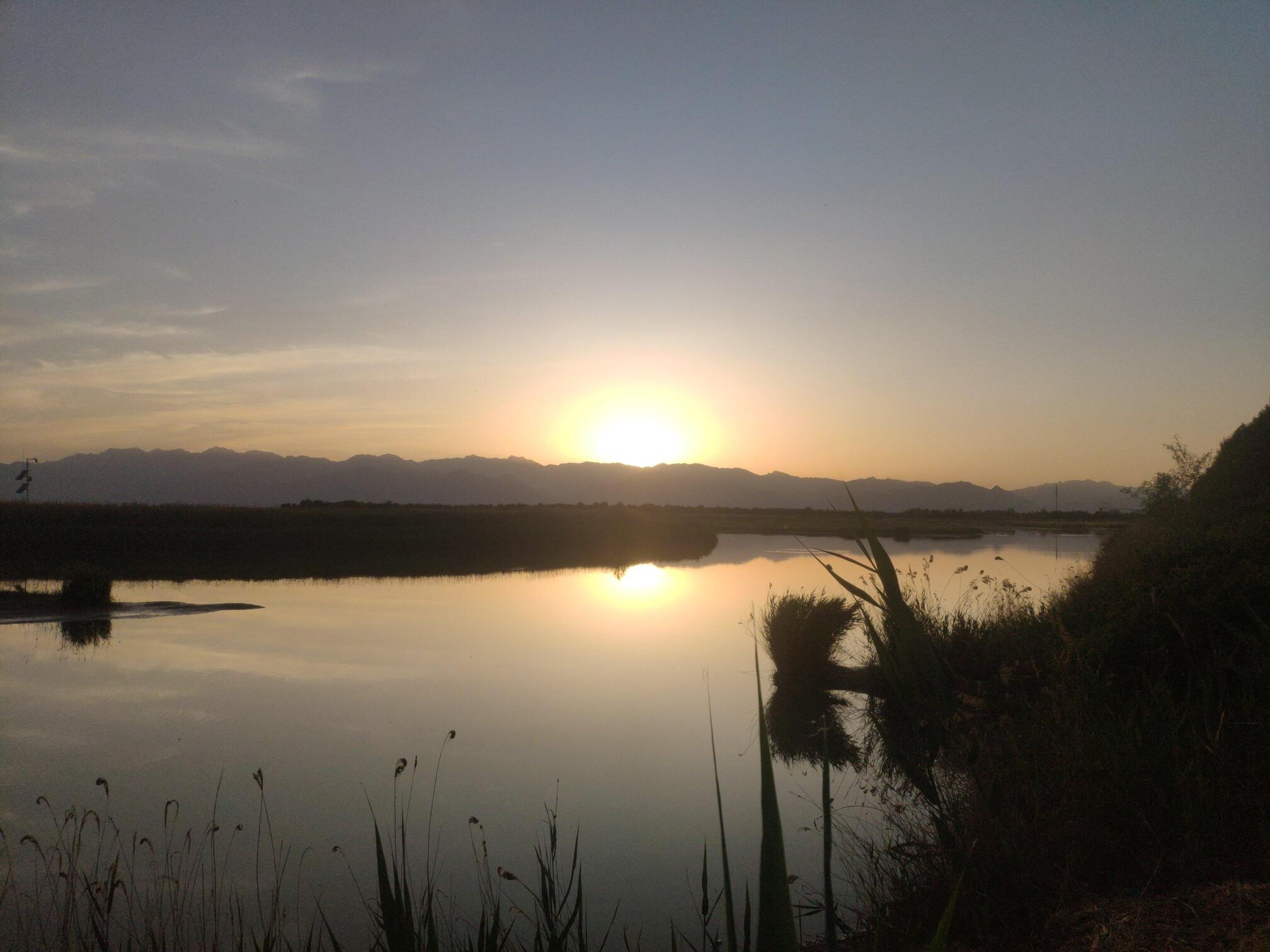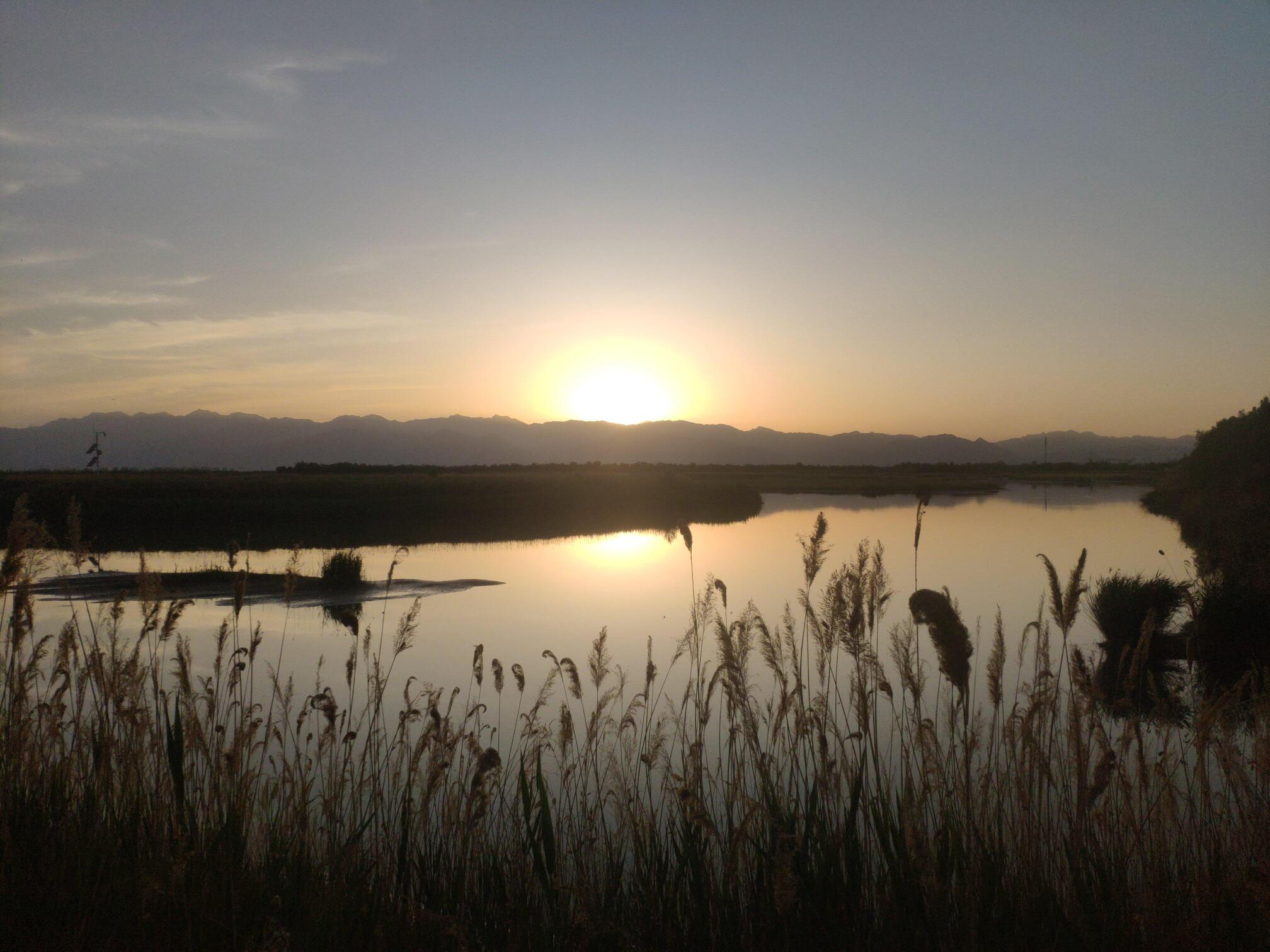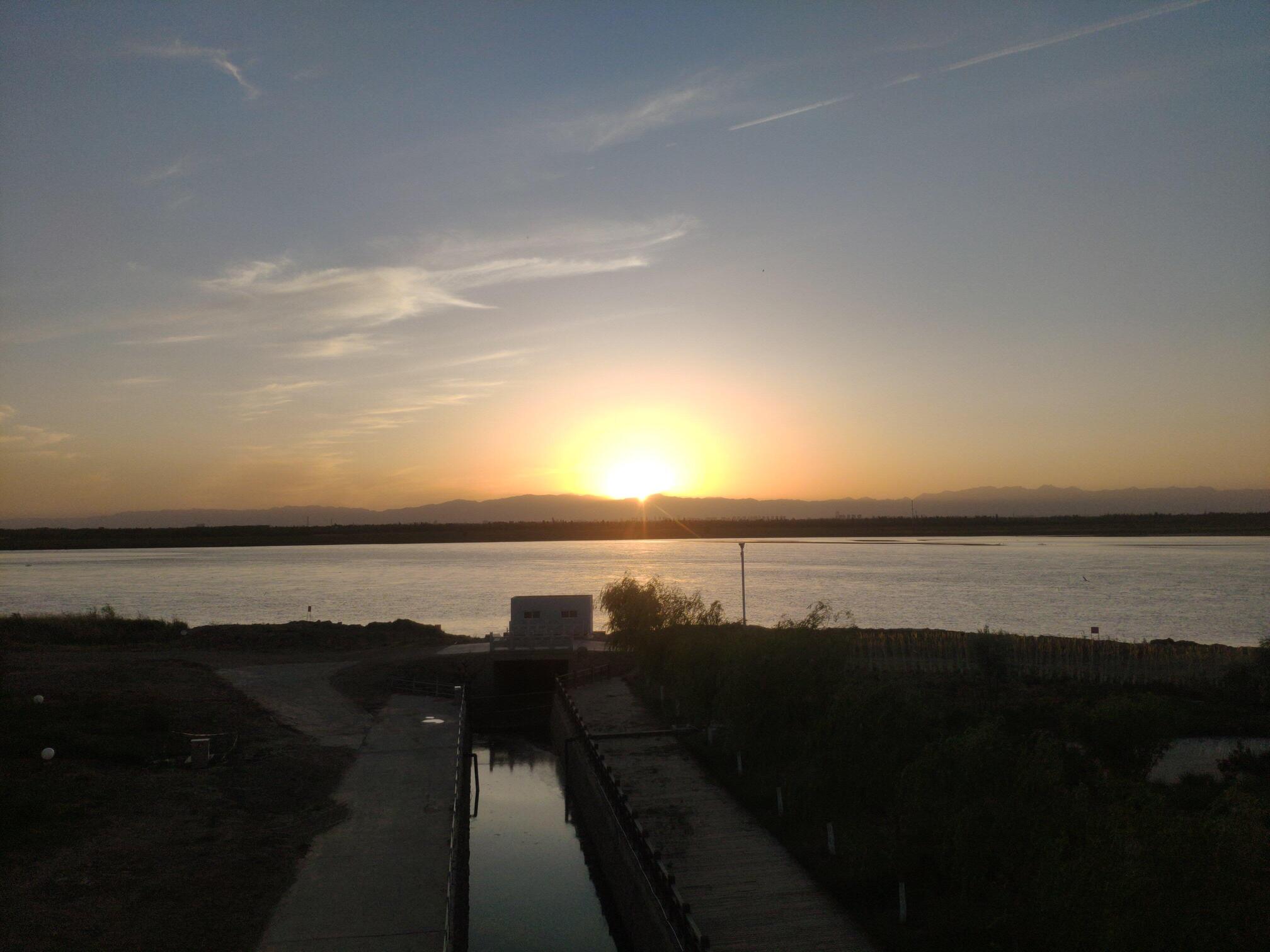 银川黄河湿地公园的日落。