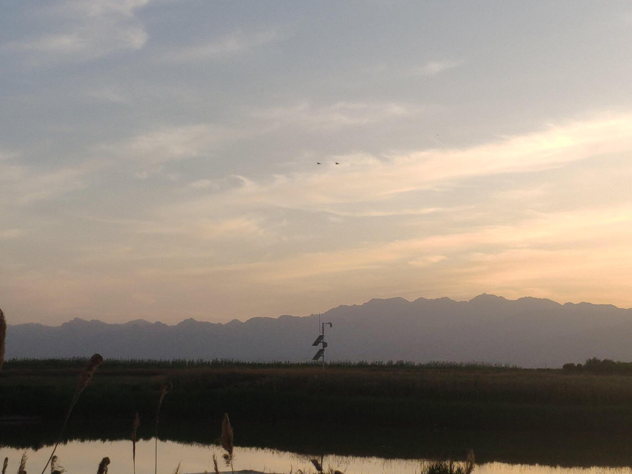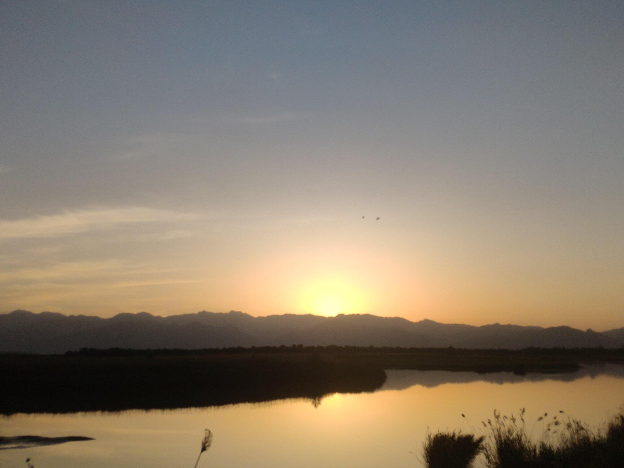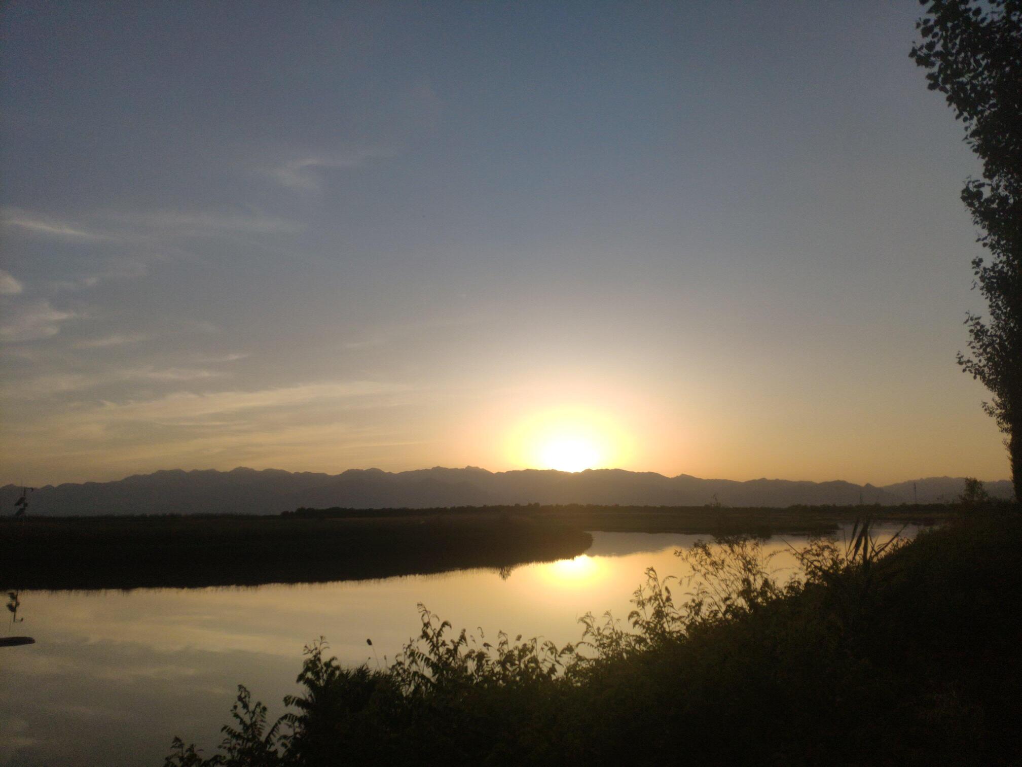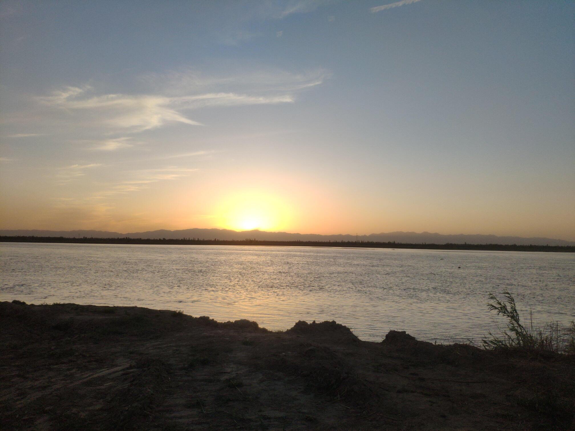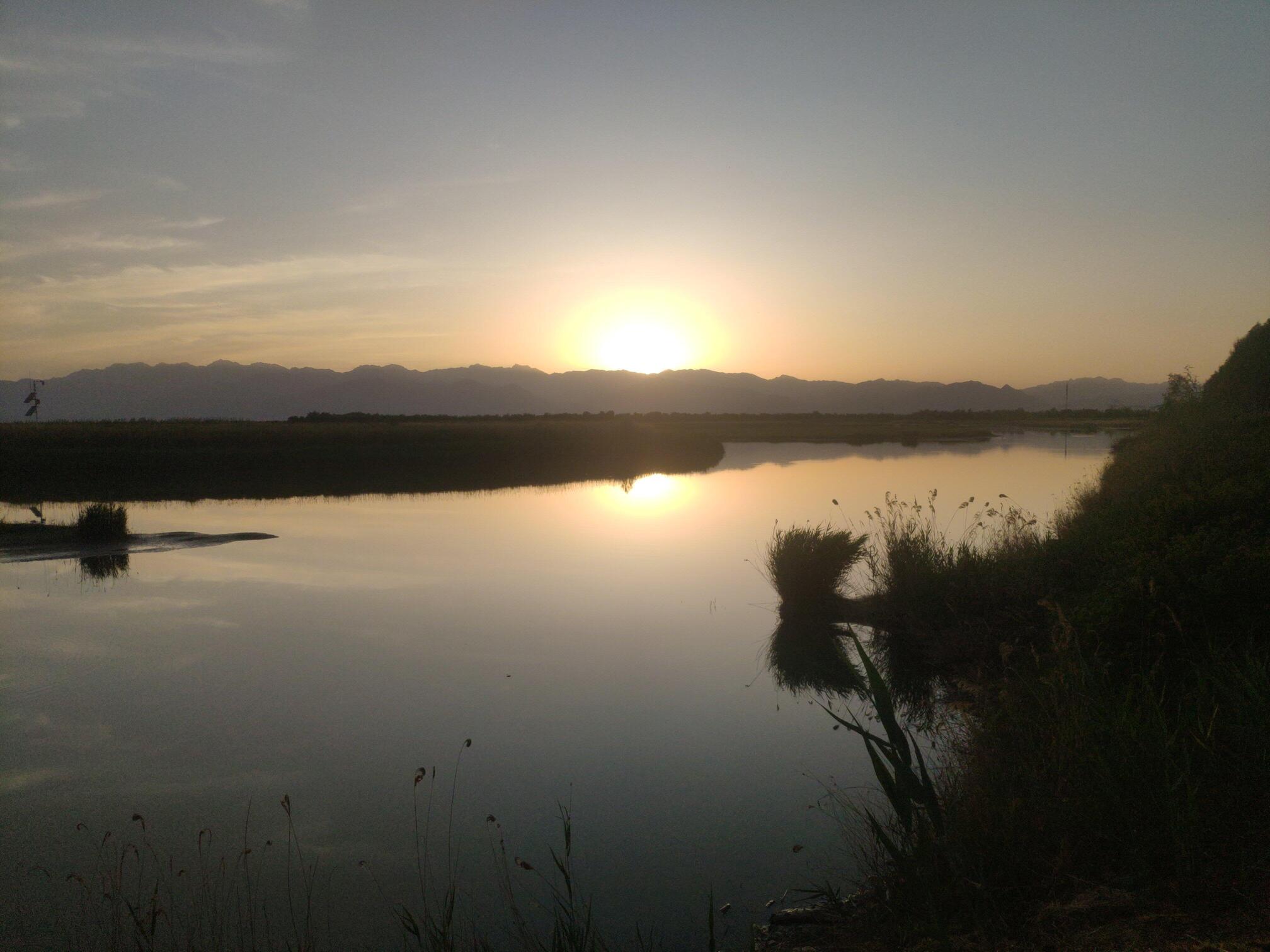 银川黄河湿地公园的日落。