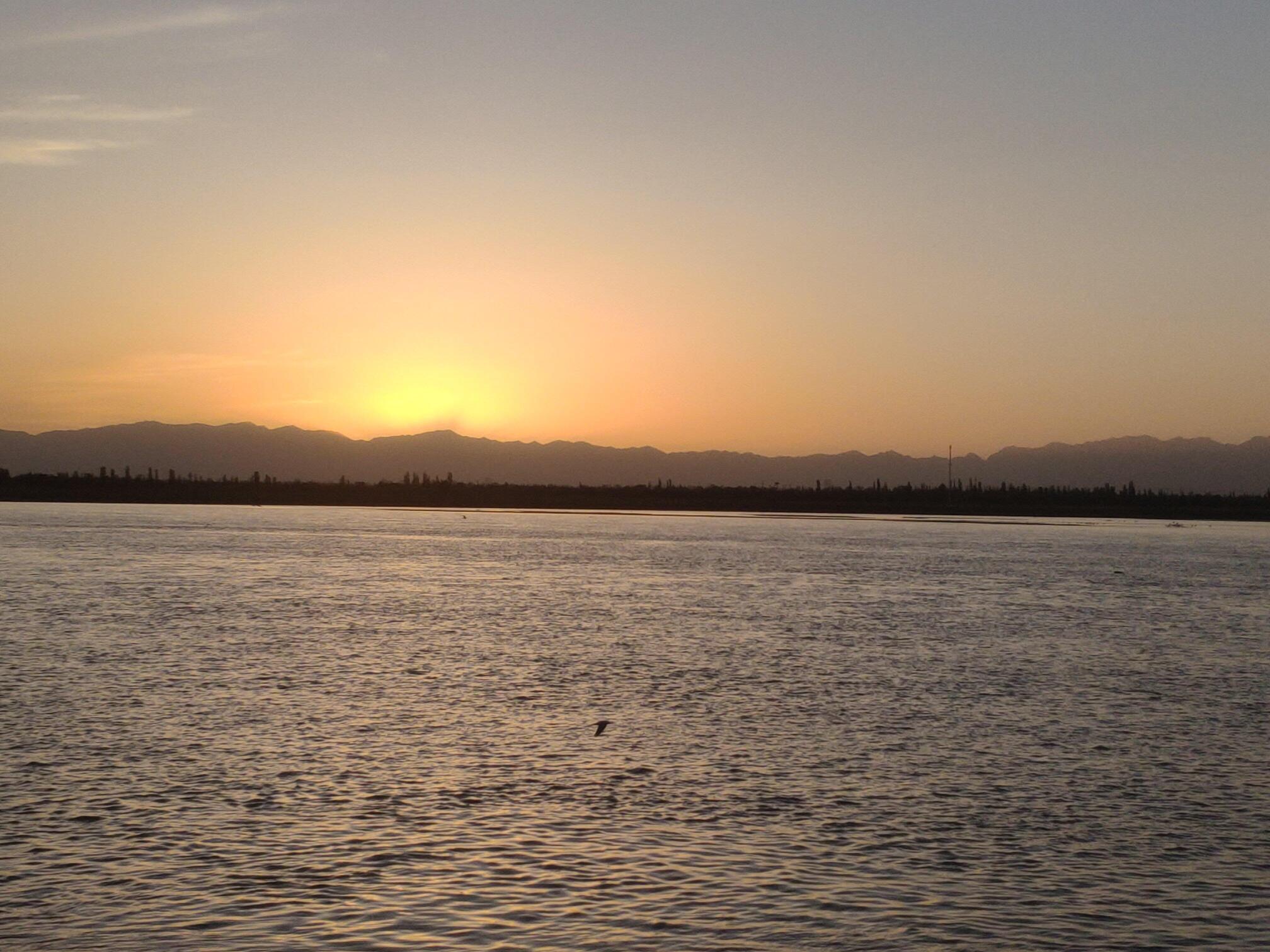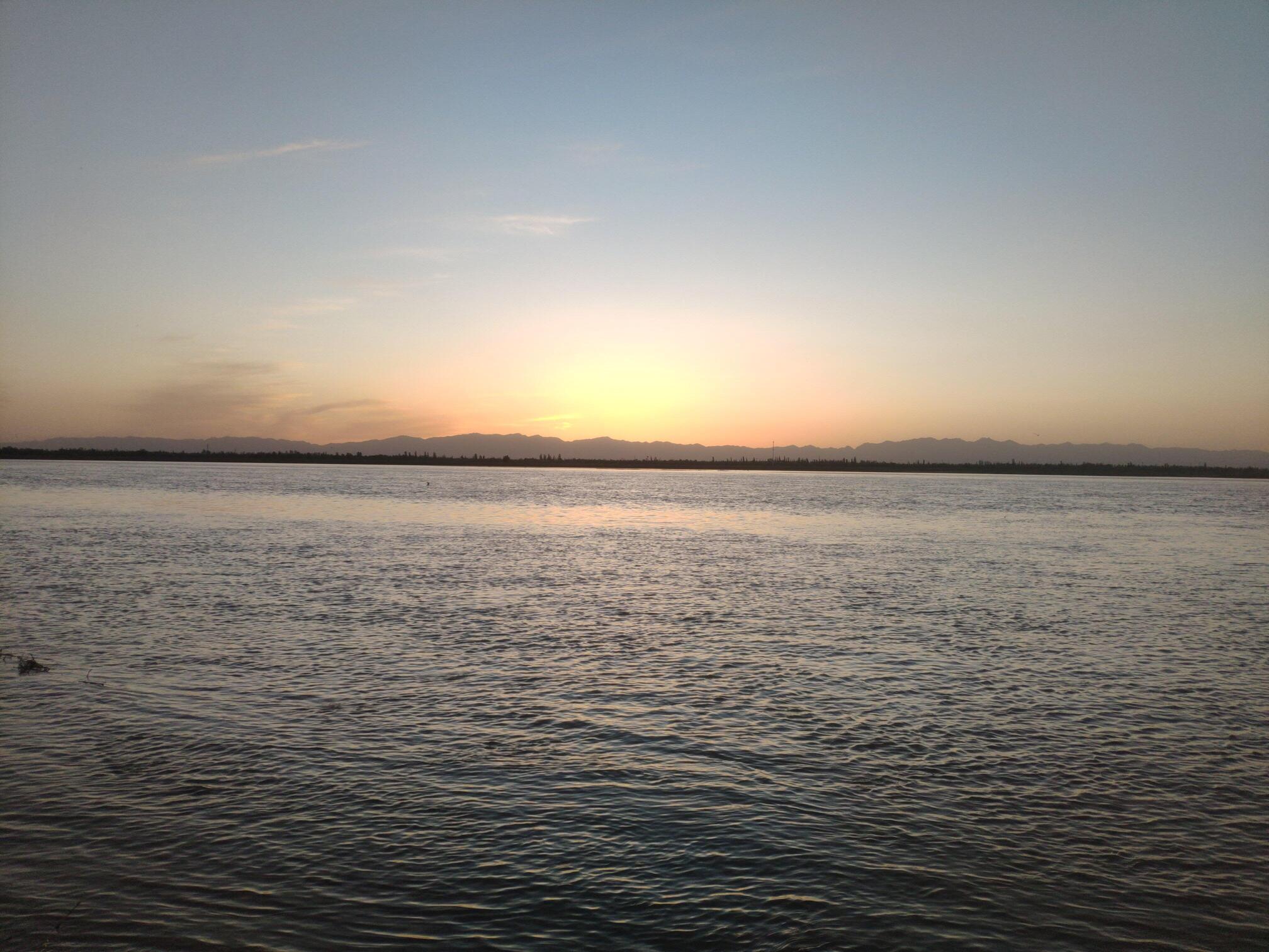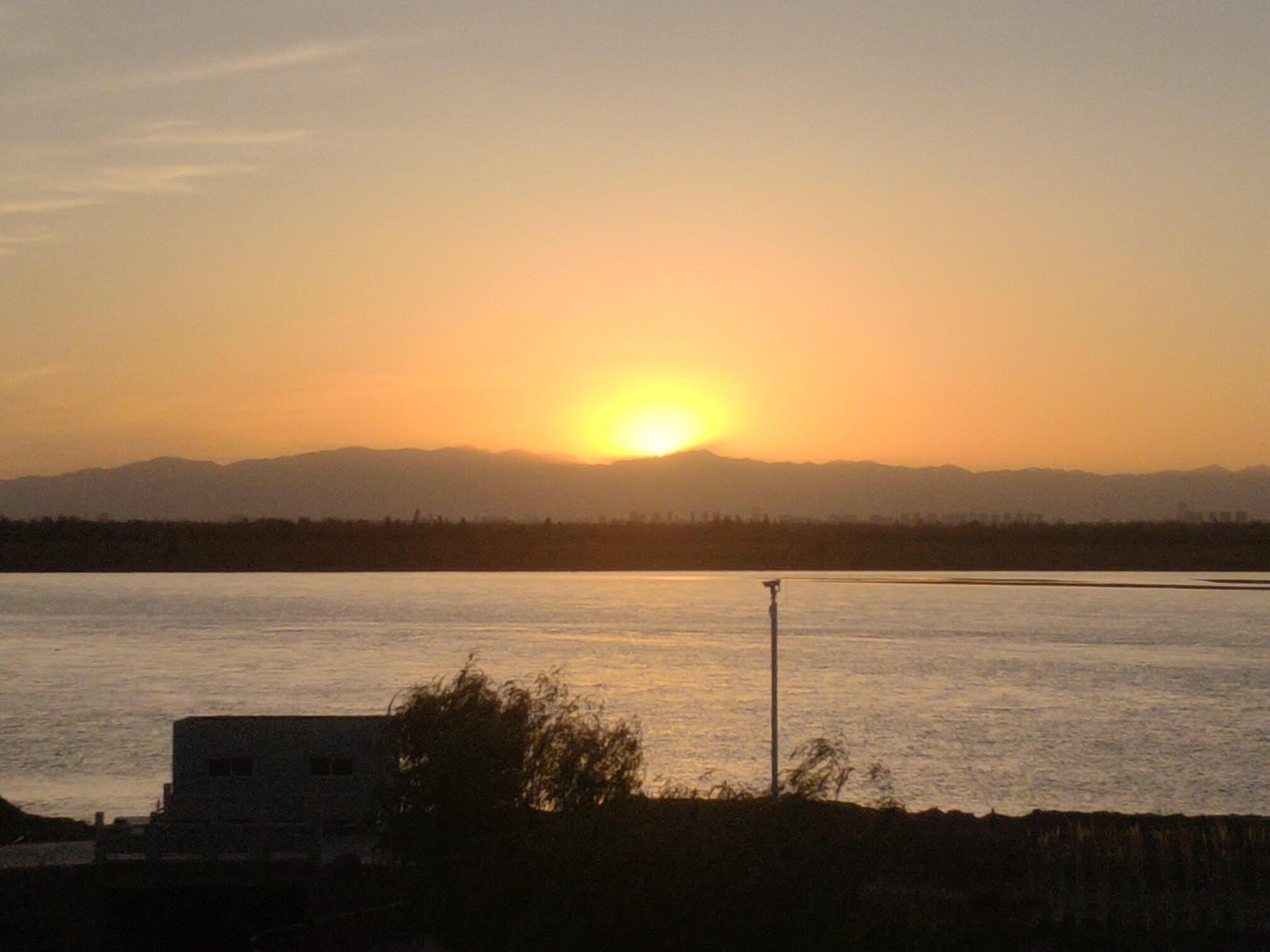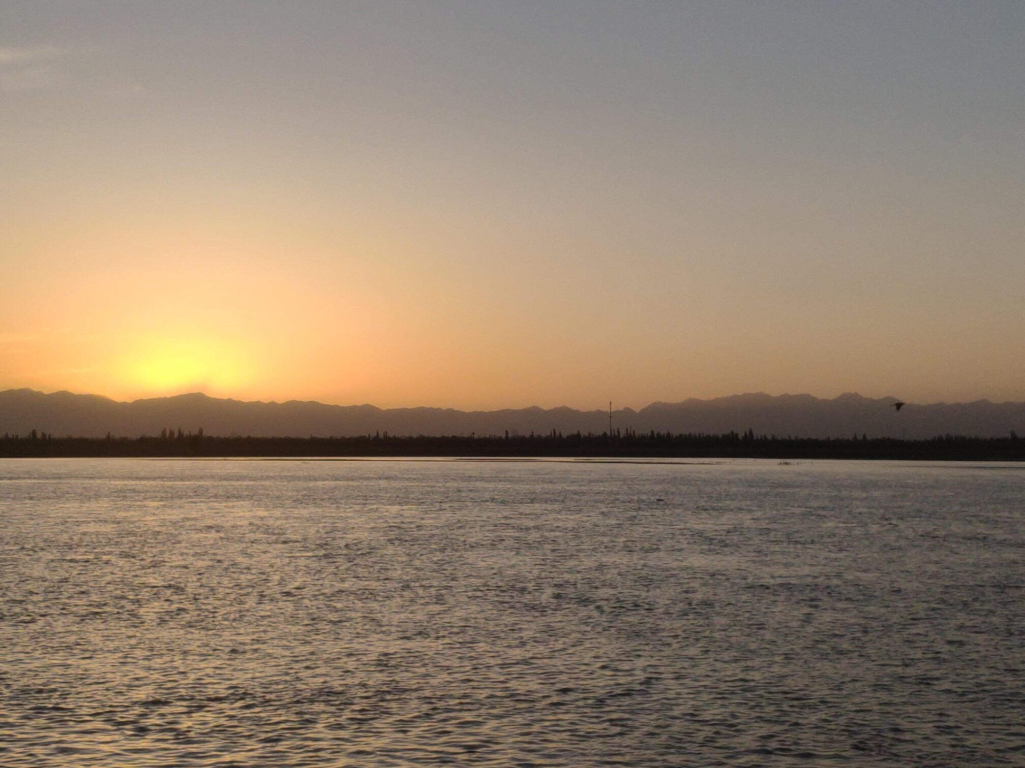 银川黄河湿地公园的日落。